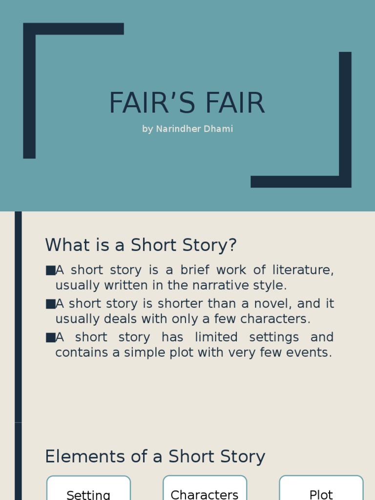 He was greedy too. The plot of Fairs fair short story By khairinaa97 Updated. Tan Raju and Sean.
