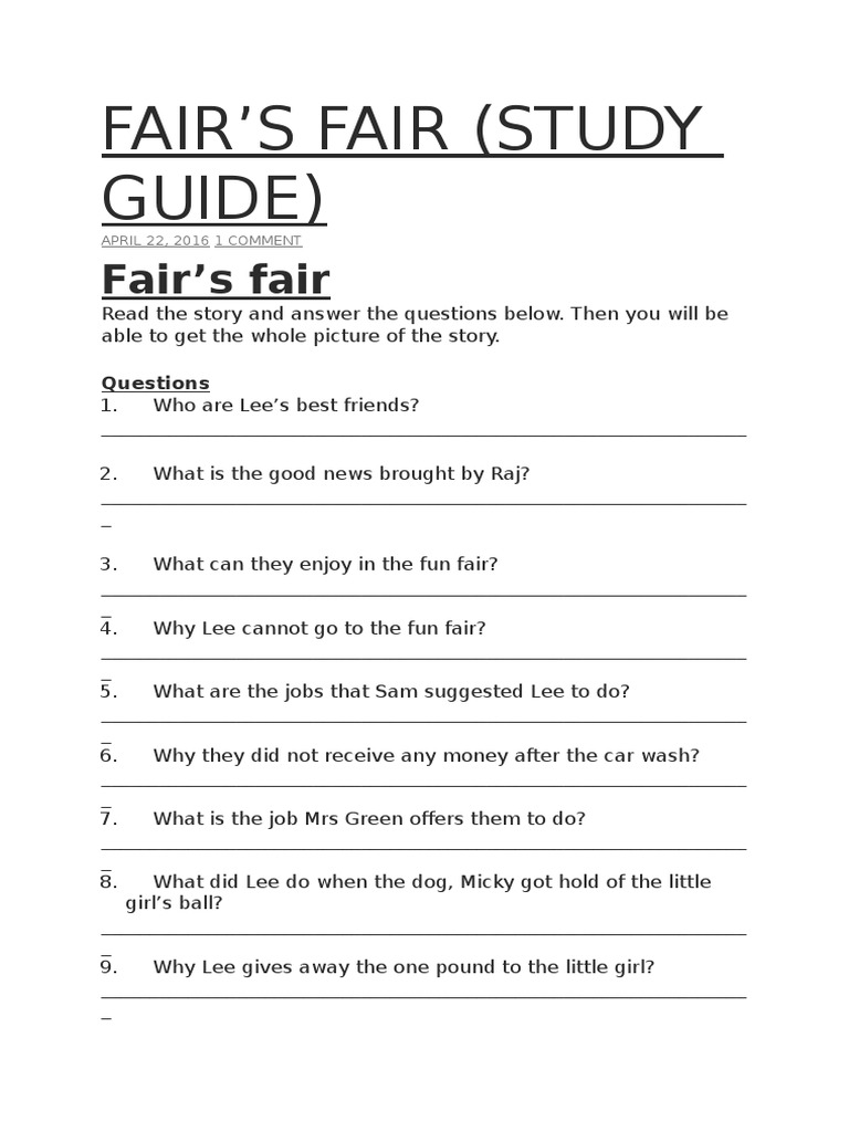 Form 1 Short Story Fair S Fair Interactive Worksheet